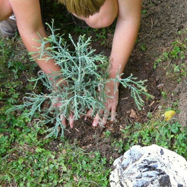 2. Szórunk a gödör aljára műtrágyát illetve a visszalapátolt földdel is elkeverhetjük. Ügyeljünk rá, hogy a gyökérnyakat ne takarjuk be