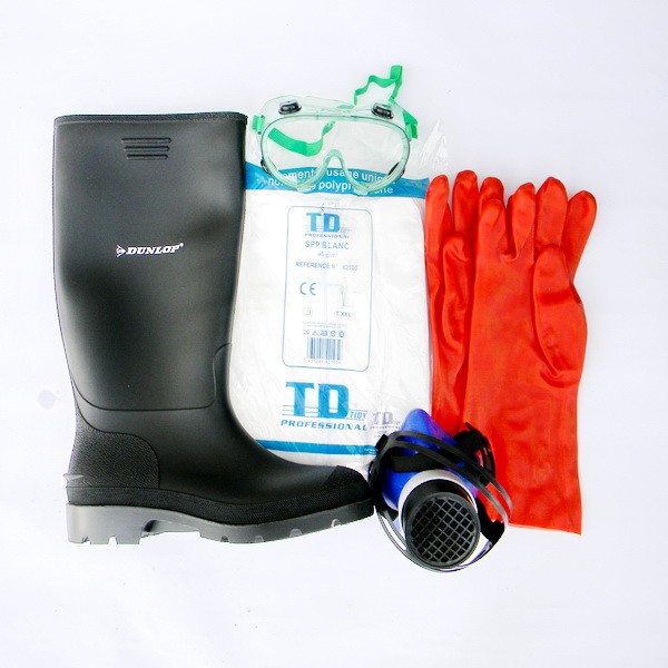 Kisüzemi, házi kerti felhasználás esetén általában kis mennyiségű növényvédő szer, alkalomszerű felhasználása történik. Azonban mindez változatos módon valósul meg, mert gyümölcsfákat, szőlőt zöldségeskertet vagy dísznövényeket is kezelhetünk kertünkben. A kijuttatást általában azonos személy készíti elő és végzi el. Ajánlott védőfelszerelés védőruha kombináció: