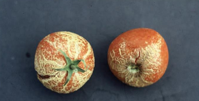 A káliumhiány következtében növény alsó levelei sárgulni kezdenek a levél erek közt. Idővel a levélszélek száradni kezdenek és megjelenik felsőbb leveleken is a sárgulás. A termés nem színeződik egyenletesen a káliumhiány következtében. A növényen kevesebb, satnyább oldalhajtás fejlődik.